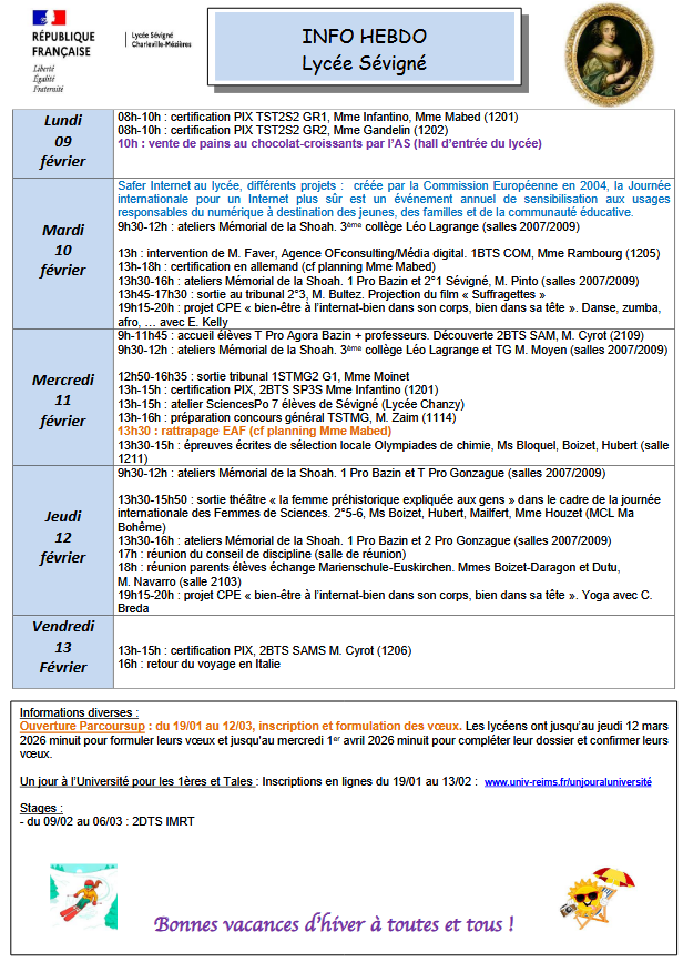 Nous vous attendons avec plaisir pour découvrir le lycée Sévigné et ses projets.