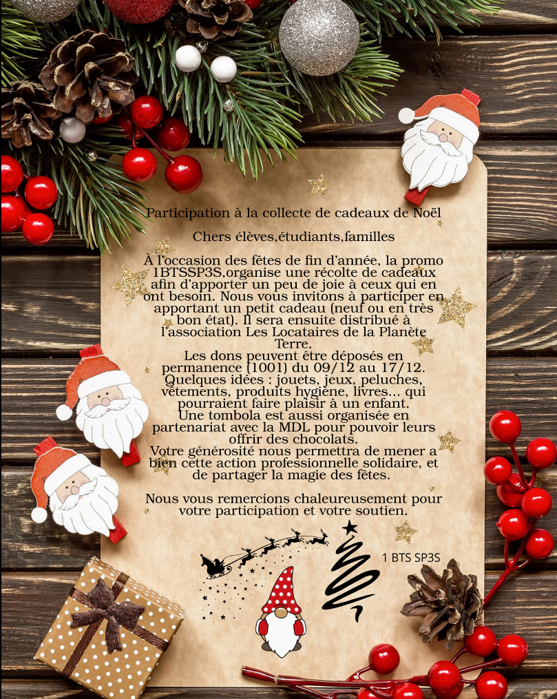 Ce jeudi 18 décembre 6 représentants des étudiants de 1ère année de BTS SP3s ont eu l'opportunité de participer à la distribution des vêtements et jouets collectés pendant 2 semaines au sein du lycée au profit de l'association les locataires de la planète terre. Un partenariat qui dure depuis 2018.