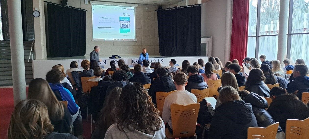 Les interventions du matin (TST2S2 et TG2) ont été menées auprès des élèves accompagné·es et encadré·es de leurs professeur·es (merci à Mme Infantino et M. Pinto) et de membres de l’équipe EVARS (Mmes Caudreliez et Chevalme, M. Marbaise).